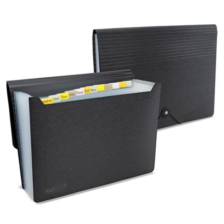 Harmonikamappa, A4, PP, 13 rekeszes, RAPESCO "Eco GRS Recycled", matt fekete