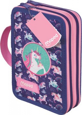 Tolltartó, töltött, 2 emeletes, cipzáras, MAPED, unikornis