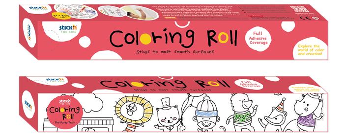 Színező tekercs, öntapadó, 31x355 cm, STICK N, parti vonat