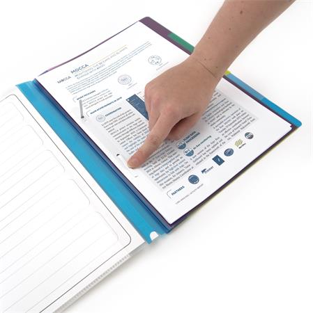 -a mappa 5 különböző színű részt tartalmaz, mindegyik saját jelölővel, és 8 cm lefűző szerkezettel ellátott