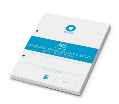 Gyűrűs könyv betét, A5, sima, 50 lap, BOXER, fehér